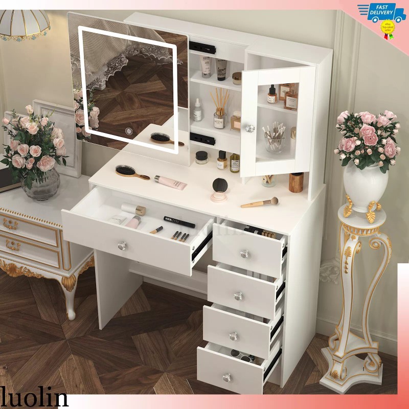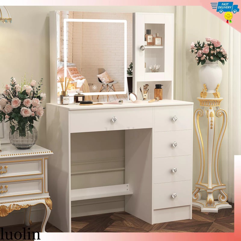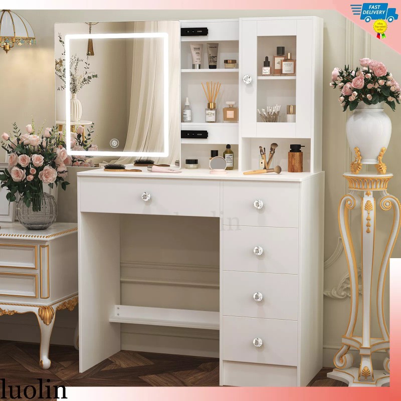 Yamissi Vanity Set with LED Lighted Sliding Mirror Makeup Dressing Table Dresser Desk US