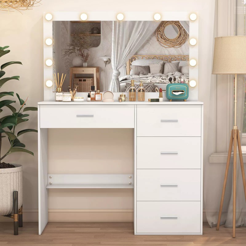 Vanity White Makeup Table Set Dressing Desk With 11 LED Lighted Mirror 5 Drawers