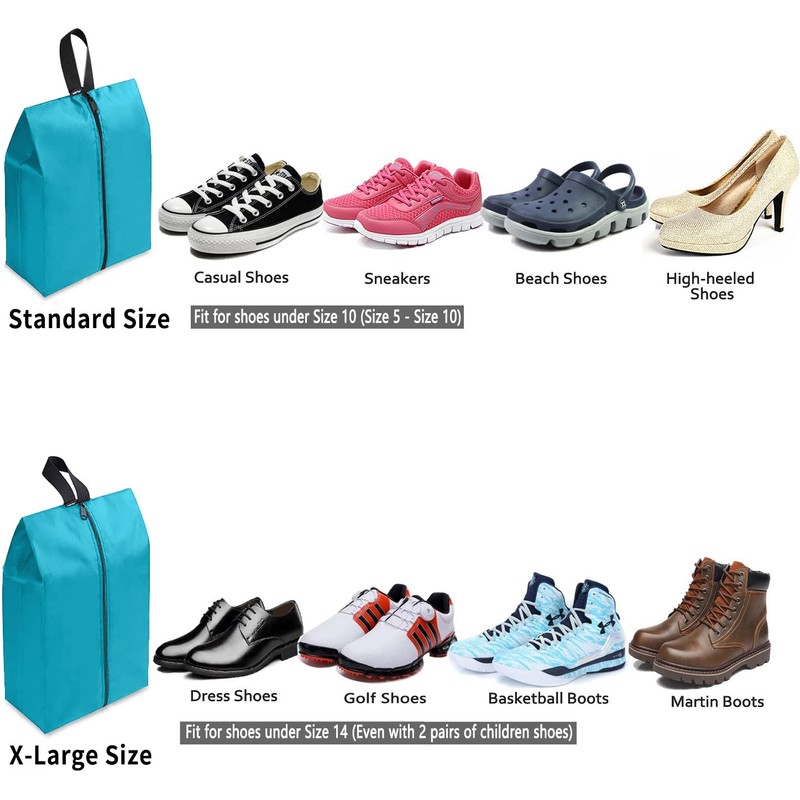 - 【2 Perfect Sizes of Choices】Set of 4, 2 standard sizes +2 X-Large sizes= Perfect size for both lady shoes and man shoes. Standard size: (9"L x 4.7"W x 9.8"H), fit for shoes under size 10. X-Large size: (9"L x 4.7"W x 12.2"H), Large enough for men shoes between Size 10 to Size 14. Also can store 2 pairs of shoes, great shoe storage bags.