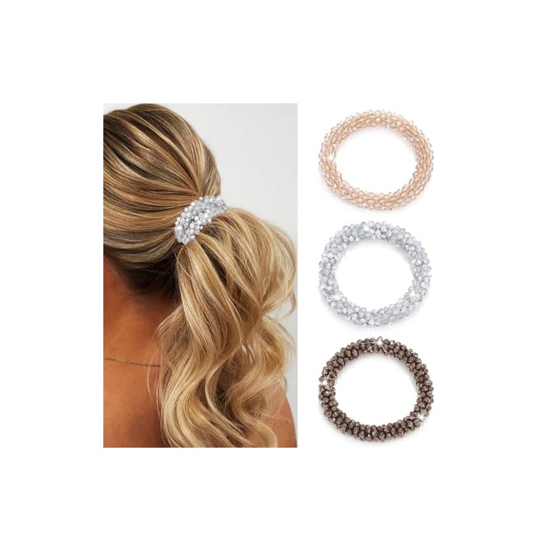 - Package contents: pack of 3 hair bands with rhinestones: you will receive 3 beautiful women's scrunchies in the elegant colours champagne, brown and silver. These scrunchies are ideal for different hair types and offer both comfort and style. Perfect for everyday use to tame your hair.