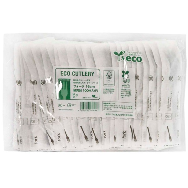 Yanagi Products Y-307 Fork, 6.3 inches (16 cm), Pack of 100, Paper Enclosed, Coffee, Bio