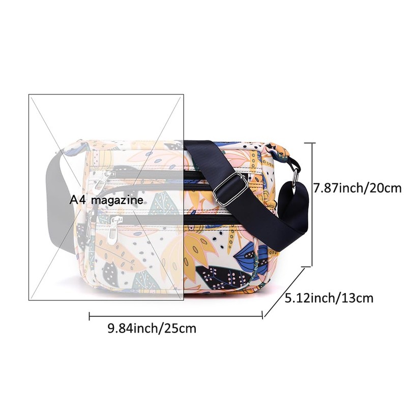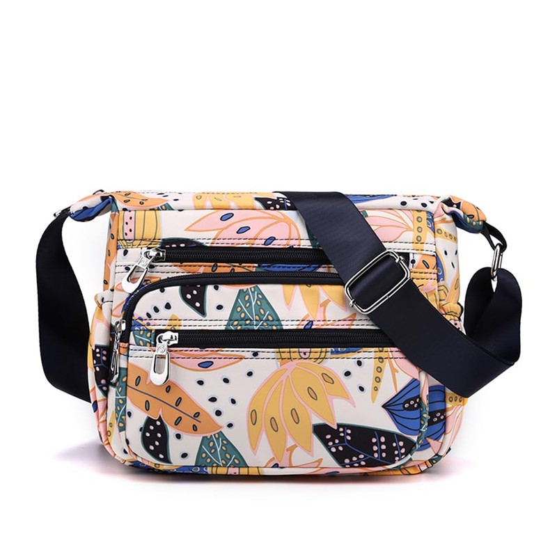 YANAIER Crossbody Bag for Women Ladies Multi Pockets Shoulder Bag Handbag Lightweight Nylon Casual Messenger Bag Travel Purse Colorful Leaves