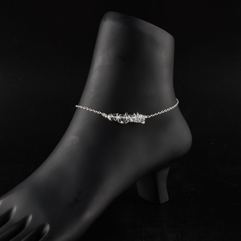 - Know Your Jewelry: Gemstone: Clear Quartz | Style: Anklet / Ankle Bracelets For Women | Quality: Premium | Stone Cut: Faceted | Stone Shape: Nuggets | Metal: Silver Plated Brass | Gemstone Size: Approx 3-7MM | Stone Weight: 5-9 Carats.