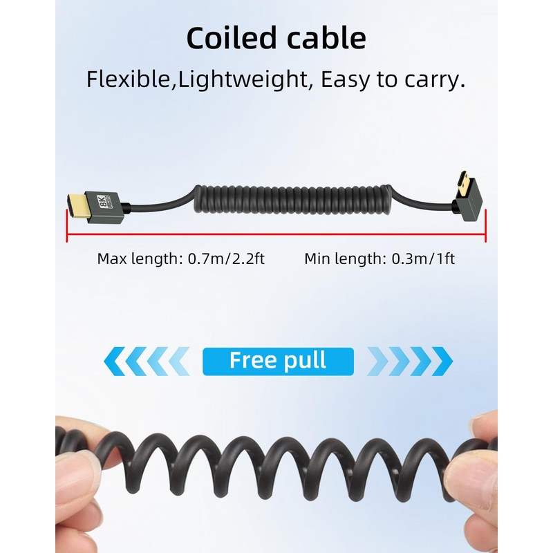 - 【Ultra Flexibility】The spring spiral Mini HDMI cable's coiled design allows for flexibility and easy storage, which is a significant advantage over traditional straight cables.It is especially suitable when you need both flexibility and compact cable routing. Mini HDMI cables are rolled in a loop to prevent clutter, the unstretched length is 1FT and can extend up to 3FT.