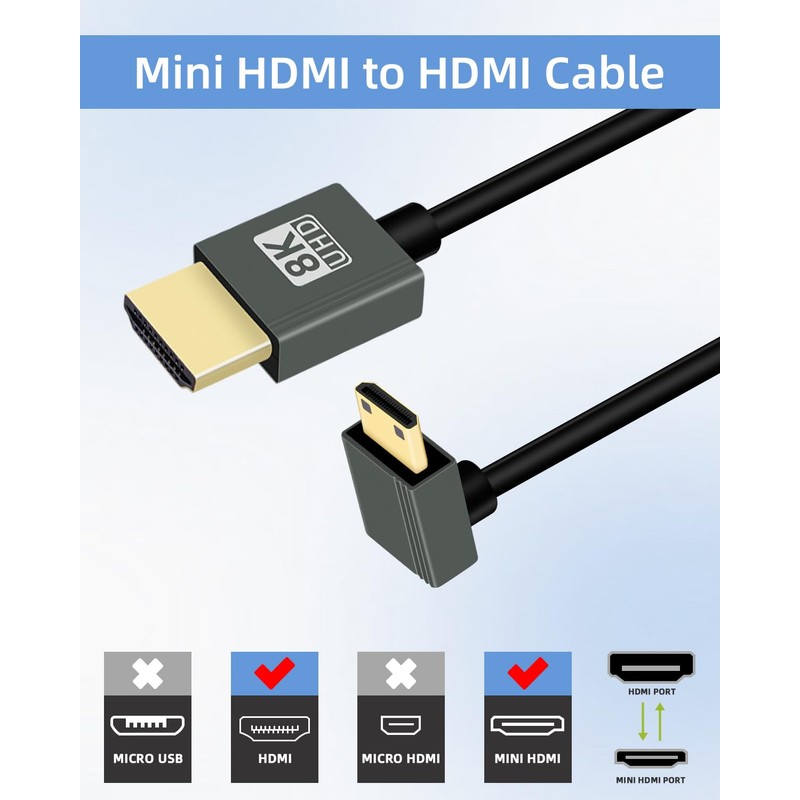 - 【8K Mini HDMI to HDMI Cable】This HDMI to Mini HDMI cable supports 48Gbps 8K@60Hz. It allows you to stream audio and video from a laptop, camera, or tablet using a mini HDMI port to a HDTV/monitor/projector with an HDMI port. Backward compatible with 4K, 2K, Full HD 1080p and HD 720p.