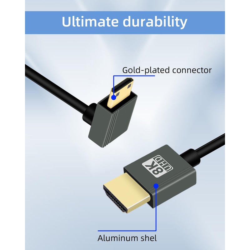 - 【Enhanced Durability】Crafted with premium materials. The aluminum shell makes the Mini HDMI cable less prone to scratches and rust. Gold-plated connector prevents corrosion and oxidation, making it more durable.
