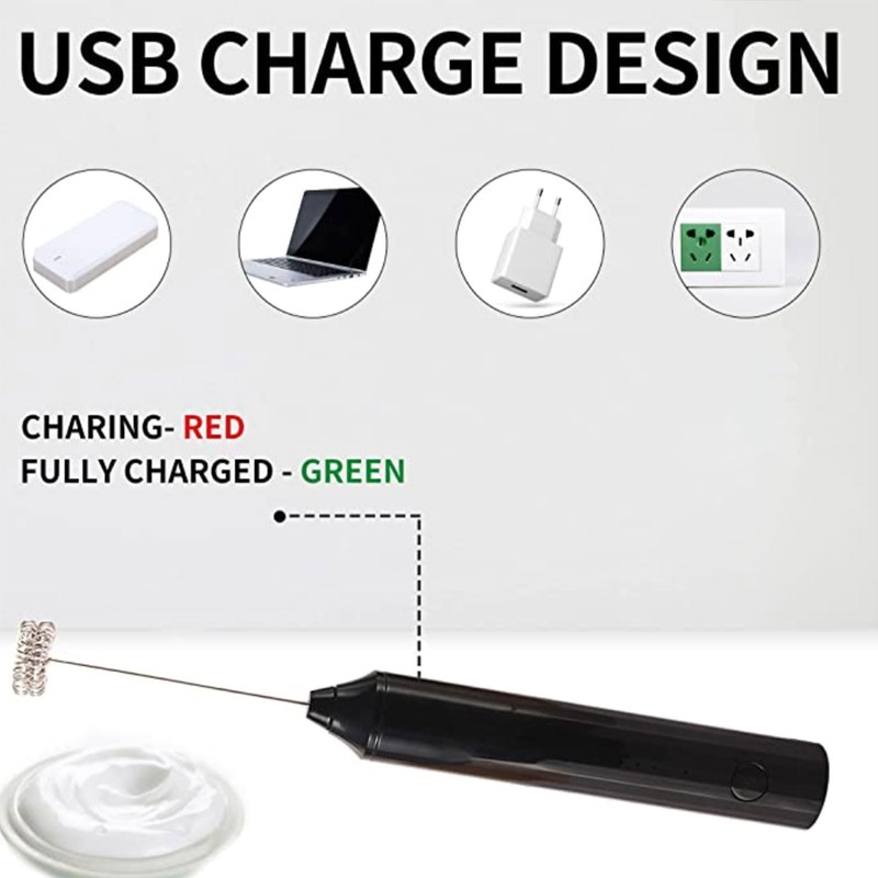 - 【USB-C Charging Long Battery Life】: Our electric frother is equired with USB charging design, which is more environmentally friendly and lighter than the battery type,you may charge it anytime and anywhere. It can be your ideal coffee-mage at home, in the office, or even taken out for camping. The built-in battery capacity is 1200mAh, which can be used several times a day after being fully charged. This drink mixer handheld also includes a charging indicator light that lights up red when charging and green when fully charged.