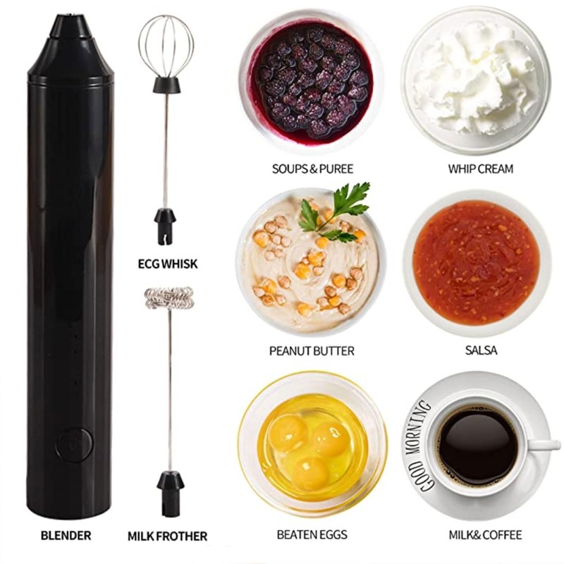 YANDEA Electric Milk Frother,Blender, Electric Foam Maker with 3 Whisks,USB rechargeable,BLACK,Drink Mixer for coffee Lattes, Cappuccino, Frappe, Chocolate,creamy,belender for baking, egg,flour