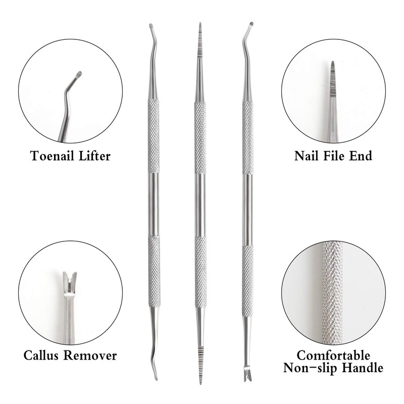 - Double-headed design: the 4 pieces double instrument foot care are all double-sided and equipped with a special hardening technology to ensure that the slim end is never deformed. It can be easily cleaned up to the depth of the nail without causing strong pain.