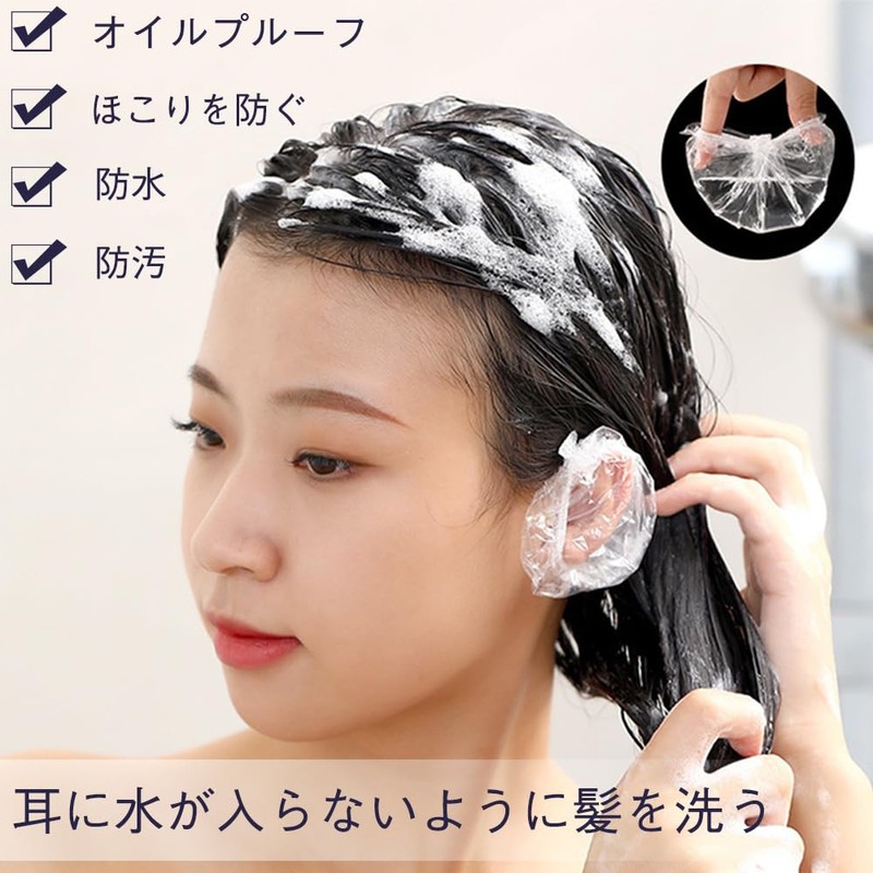 [YANGMUDAN] 使い捨て イヤーキャップ 耳カバー キャップ 耳保護 防水 耳キャップ フリーサイズ 毛染め 髪染め 理容 美容院 新生児 幼児 男女兼用 (透明 約100枚入り )