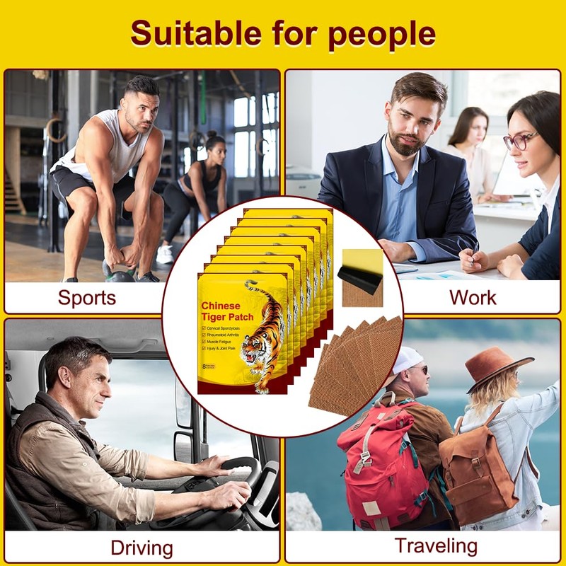 ❤️‍🩹The tiger patches relieve muscle aches, back pain, joint pain and sprains by generating heat, effectively improving blood circulation, and relieving pain, are suitable for the elderly, joint pain patients,office workers, drivers, manual workers etc.