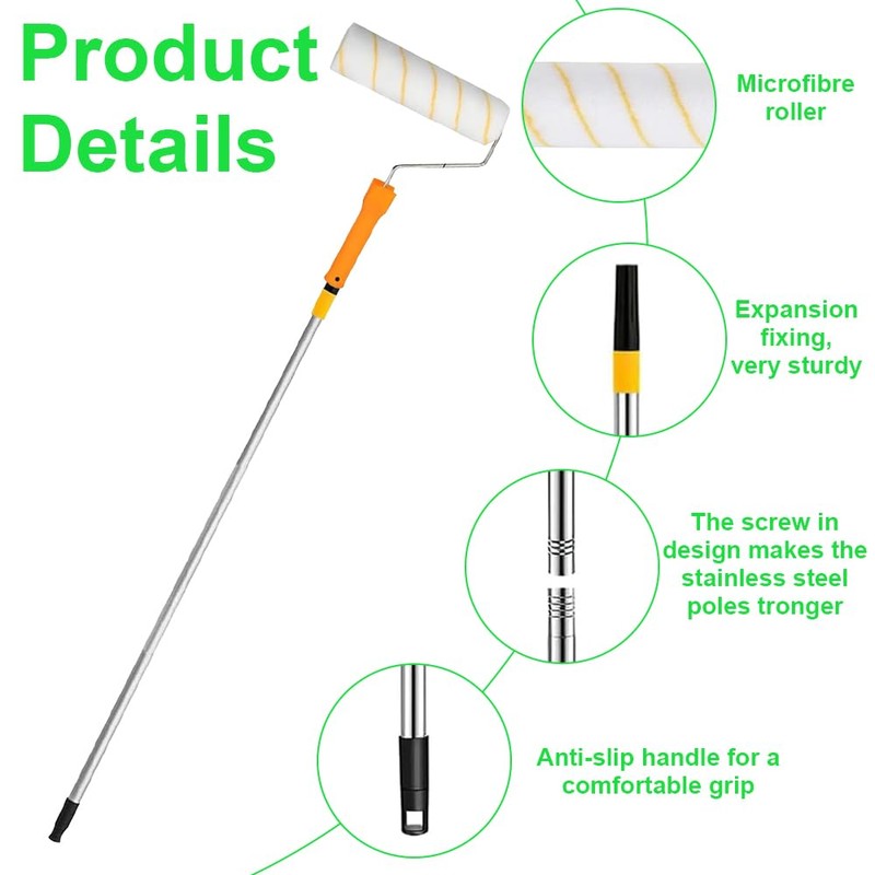 - ✅【Premium Quality Materaials】High quality brush head and tainless steel splicing poles, whole construction is sturdy, corrosion-resistant and rust-resistant, built to last, paint roller kit allows you to work effortlessly and durably.