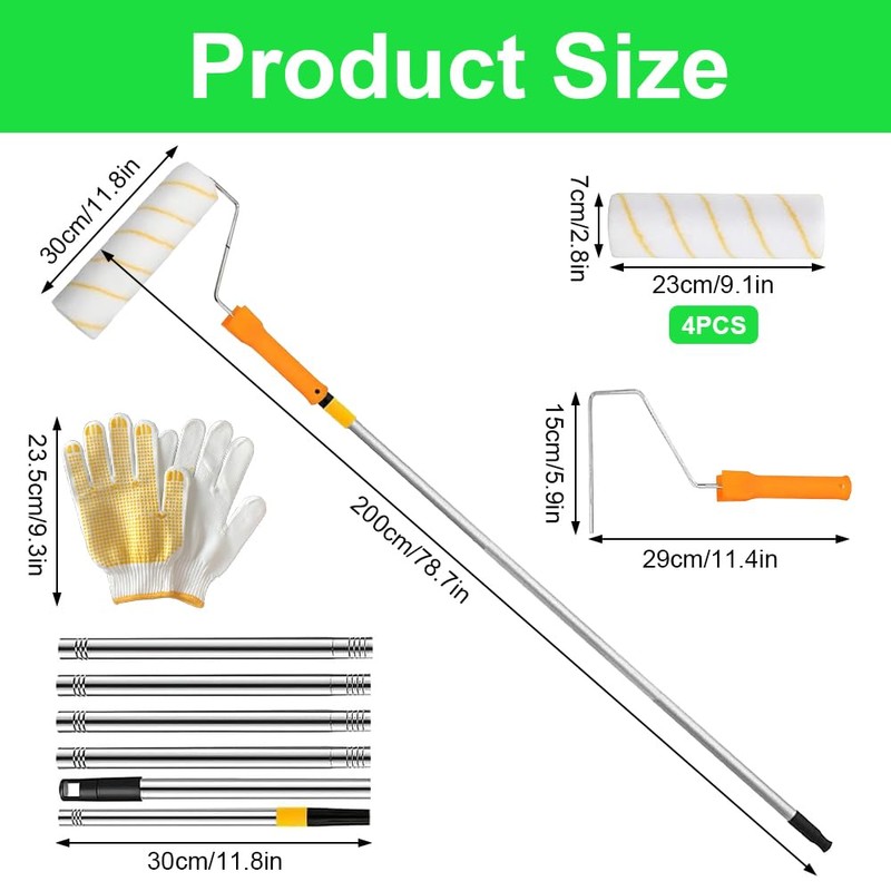 - ✅【Efficient and Safe Painting with Extension Pole】Our paint roller kit equipped with five sturdy aluminum connecting rods, and with a maximum length of 2M. The lightweight, extendable aluminum rod allows you to easily reach and paint any ceiling or wall area, it ensures safety and convenience, making it perfect for both indoor and outdoor projects.