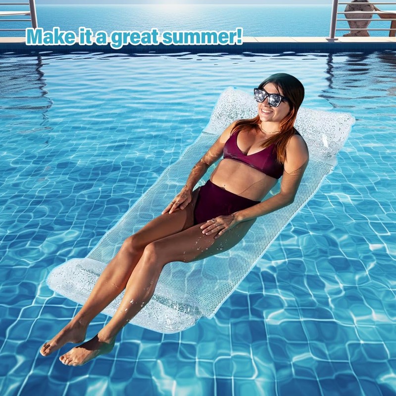 - Fashionable and beautiful: the inflatable water toy has a transparent design with integrated sequins that make this swimming hoop, inflatable water ball and water hammock sparkle in the sun and provide you with a visual feast to make you look uniquely beautiful in the swimming pool.