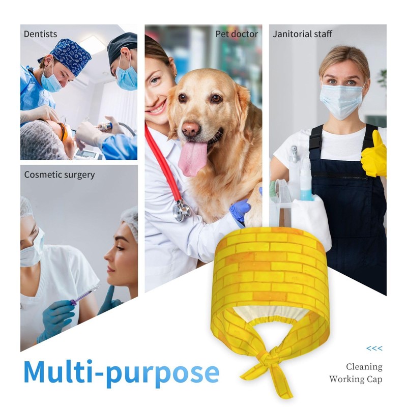 YANGZHI Brick Road Gold Yellow Unisex Adjustable Surgical Sweatband - Elastic Bandage Cap - Scrub Caps for Nurse Working Cap