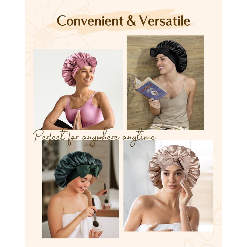 - Adjustable and Secure Fit: The satin sleep bonnet features a wide, elastic band and long adjustable straps that stretch to fit different head sizes, ensuring it stays securely in place all night without slipping off
