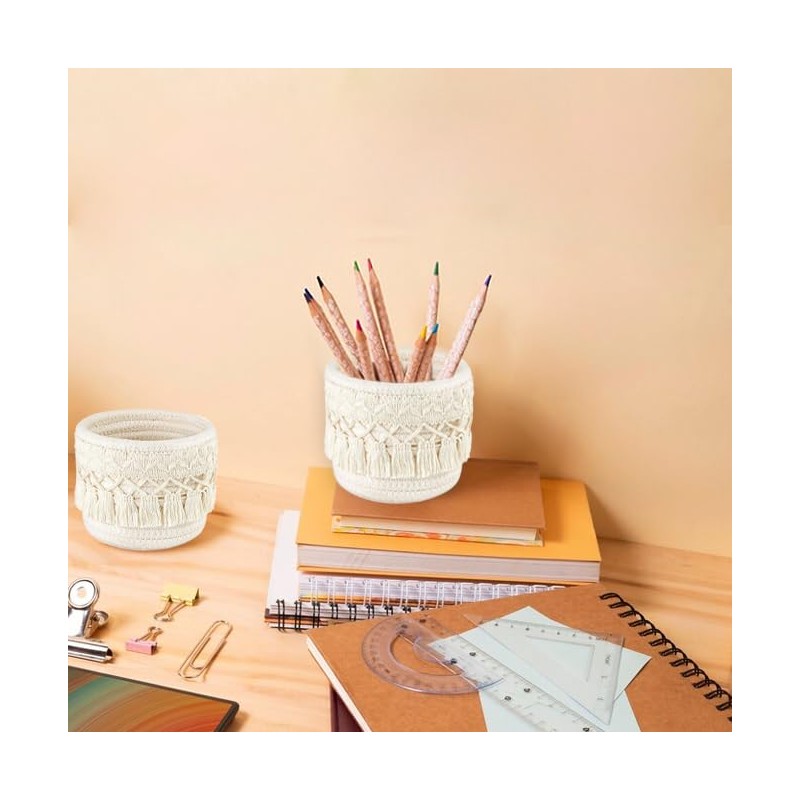 This hand-braided brush holder made of high-quality cotton rope combines Bohemian design with practical functionality