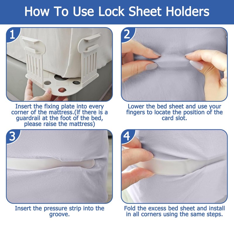 - 【Secure Fit for Undisturbed Sleep】Designed to eliminate slipping and bunching, these fitted sheet holders ensure your sheets stay taut and snug all night long. Wake up to a clean, comfortable bed every morning!