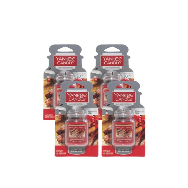 Yankee Candle Car Air Fresheners, Hanging Car Jar Ultimate, Neutralizes Odors Up To 30 Days, Sparkling Cinnamon, 0.96 OZ (Pack of 4)