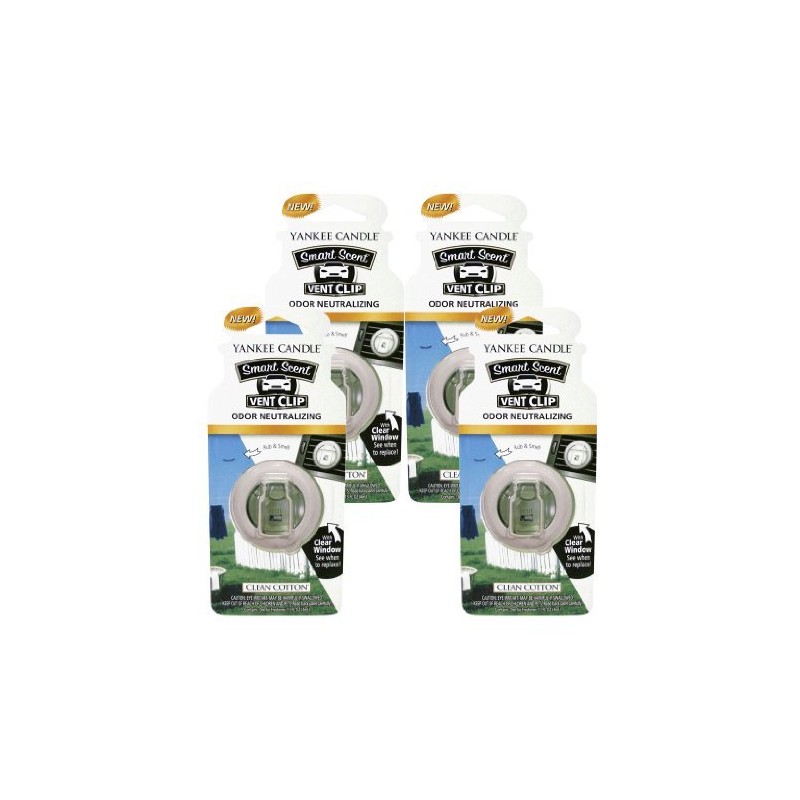 Yankee Candle Car Freshener Smart-Scent Vent Clips, 4-PACK (Clean Cotton)