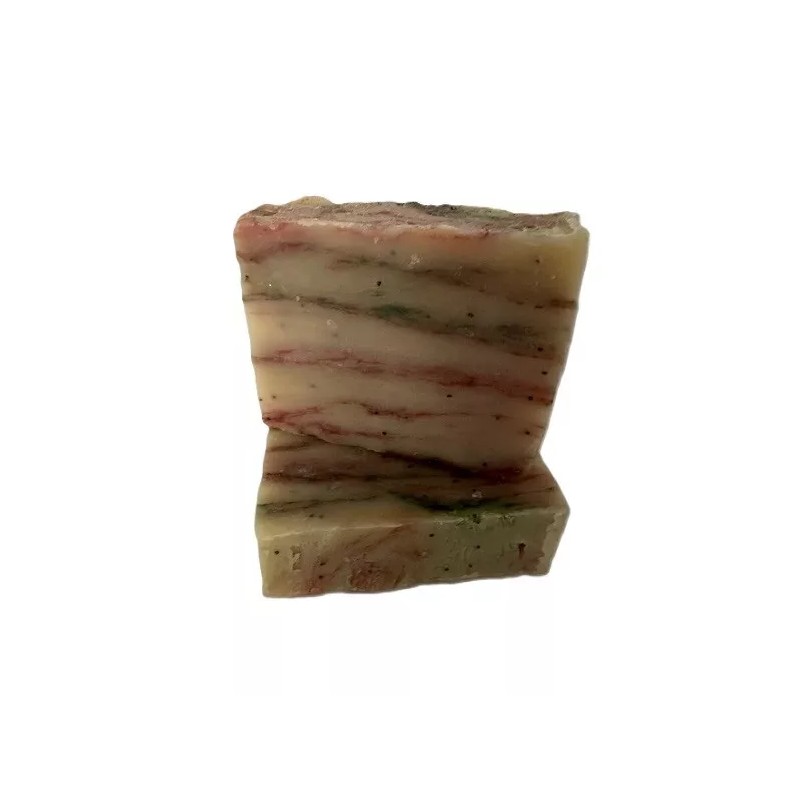 - Red and green swirled soap has a fruity holiday mixture of tart cranberries and pomegranate with a touch of candied pears.