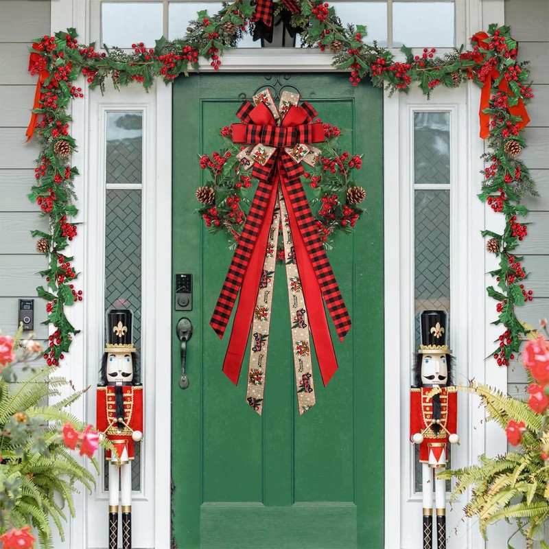 - Wide Application: This is a multifunctional Christmas bow decoration suitable for various occasions. You can not only tie the Christmas bow to your Christmas tree and wreath, but also hang it on windows, doors, walls, stairs, fences, fireplaces, etc. It can also be a great Christmas gift for friends, relatives, and neighbors