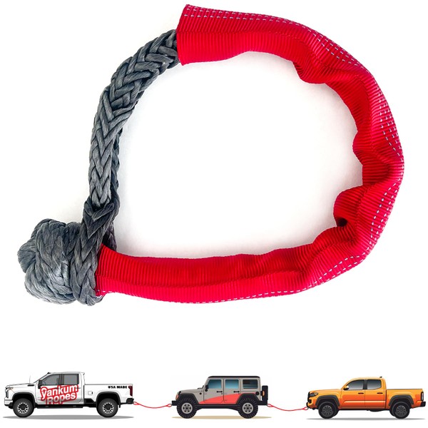 Yankum 7/16" Soft Shackle with Chafe Sleeve (Red Chafe Sleeve), Soft Shackles for Recovery Made in The USA, Soft Shackle Recovery kit,Rope Shackle, Soft Shackle Recovery kit
