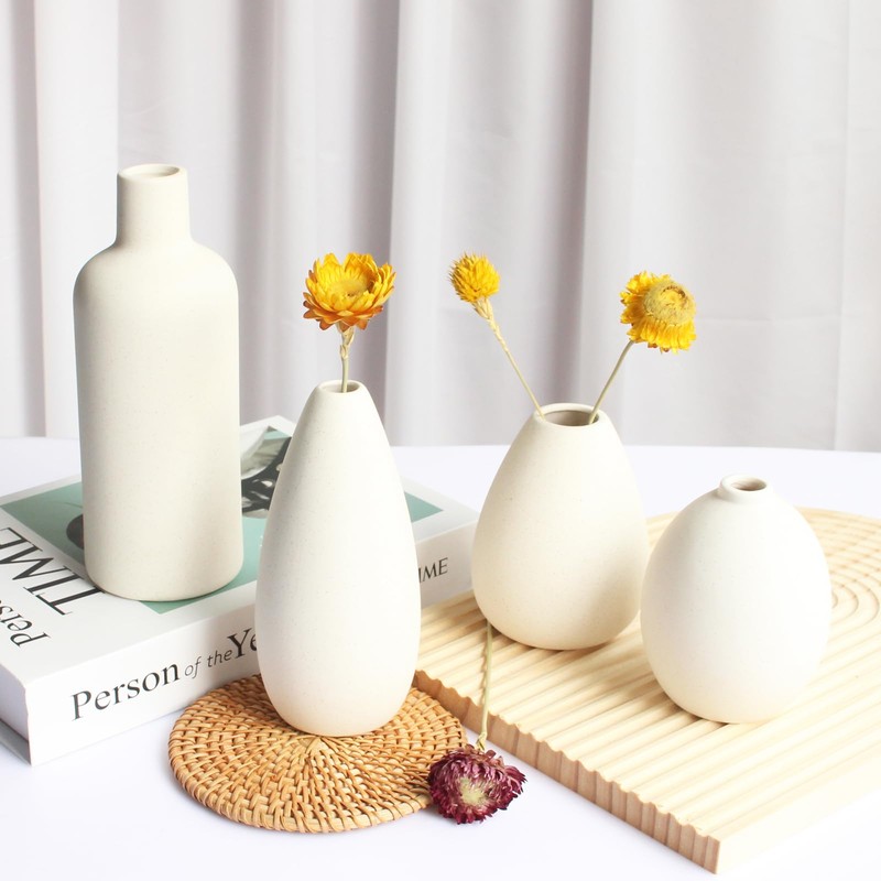 YANLING Set of 4 Beige Ceramic Vase Modern Farmhouse Vases for Home Decor, Small Neutral Flower Vases for Table, Living Room, Shelf, Bookshelf and Entryway Décor