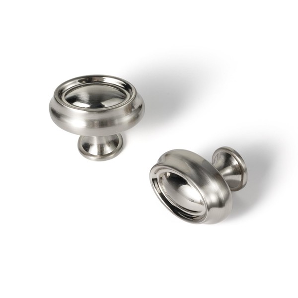Yanxia Set of 12 Satin Nickel Double-Ring Cabinet Knobs – Modern Kitchen Hardware with Concave Center Design Contemporaty Drawer Handles