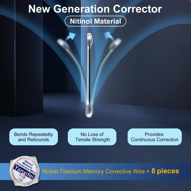 - New-Generation Nickel-Titanium Corrector: Since 2000, we have focused on ingrown toenail correction and have developed six generations of correction strips.Millions of people have benefited from our products. This new-generation nickel-titanium memory wire product is widely used in ingrown toenail store and has gained recognition from those affected by ingrown toenails