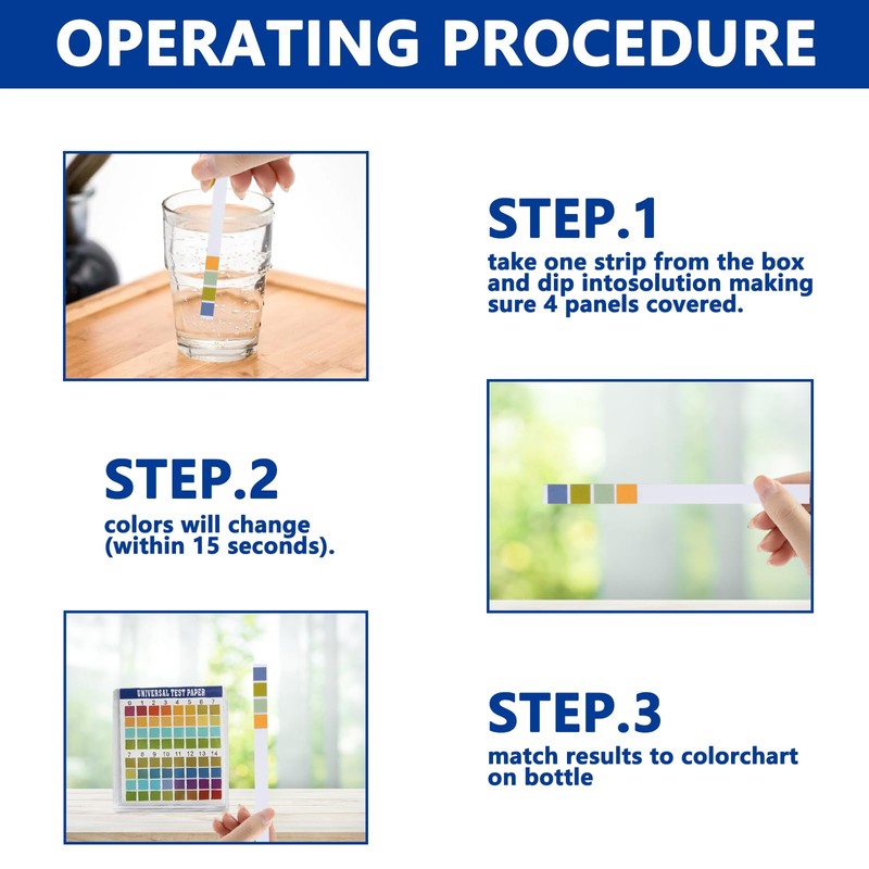 - Easy to use: This pH test strip is easy to use. Simply dip the pH strip into the solution for 2-3 and the strip will change immediately. Then simply refer to the colour chart.