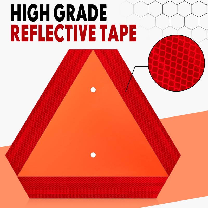 - Suitable Size: measuring approximately 14 x 16 inches, this reflective safety triangle sign is the suitable size to effectively communicate to other drivers that your vehicle is moving slowly; The size ensures that other drivers can clearly see the sign and take necessary precautions while driving behind you