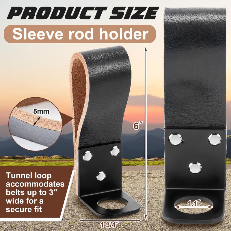 - Quality Materials: our sleeve rod holder is handcrafted with cowhide leather, and features durable metal parts; These metal parts are enhanced with a black oxide coating for long lasting rust resistance, providing consistent durability and longevity