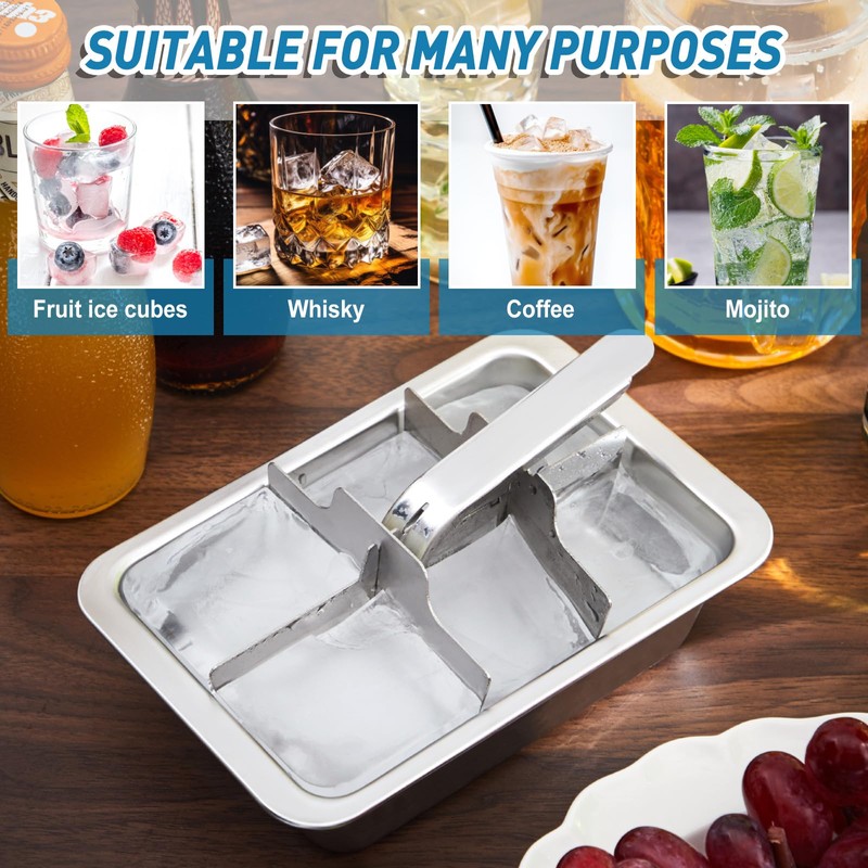 - Versatile Application: the stainless steel ice cube trays are not only nice for creating ice cubes; They are nice for making food, juice, alcoholic beverages, and more! The compact size makes it suitable for mini fridges, dorms, and more, making it a nice gift for cocktail enthusiasts