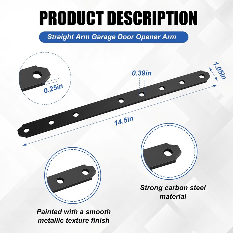• Quality: the heavy duty and durable components of the garage door opener are the key to a comfortable garage system; Our garage door openers straight arm is made of carbon steel, which is corrosion resistant and rust proof, sturdy, designed for safety and long term use