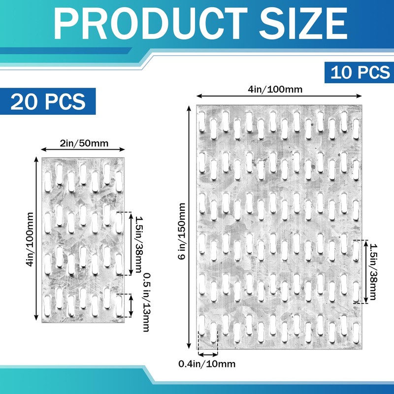 - Grip and Stability Redefined: staggered teeth features make these flat mending plates exceptional for providing the ideal grip and stability, which is also convenient to use and does not require nails, enhancing the structure strength and service life