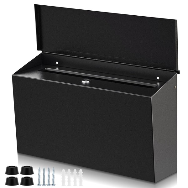 Yaocom Locking Wall Mount Mailbox for Outside 15. 35 x 9. 45 x 3. 94 Inch Large Capacity Wide Slot Black Mailbox for House with Key Lock Reduce Dead Mail Secure Metal Drop Box for Home Office Decor