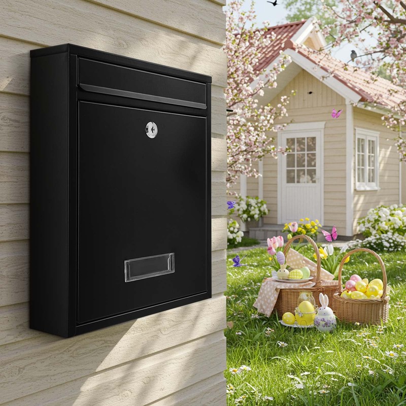 Yaocom Wall Mount Mailbox with Key Locking 13. 8 x 9. 45 x 3. 3 Inches Large Vertical Mailbox Outdoor Metal Steel Mail Drop Security Hanging Secure Postbox for Home Office School, Black