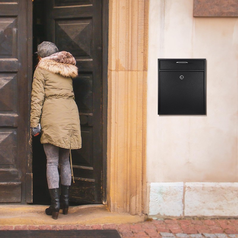 - Quality Material: crafted from quality metal material, this robust drop box promises durability; The wall mount mailbox is coated with black plating which prevents peeling off paint and rust, extending the product's service life