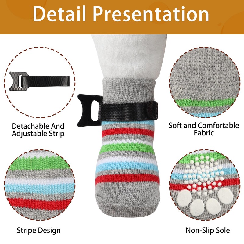 - 【Perfect for Hardwood Floors】The grip socks for dogs prevent dog paws from scratching your wooden floors, beds, sofas or other furniture.When walking on slippery ground, it is easy for senior dogs to slip and fall, non-slip socks for dogs with strong traction control protect your old buddy effectively. Besides,the dog paw socks can also prevent from licking the wound when dog paw gets injured.