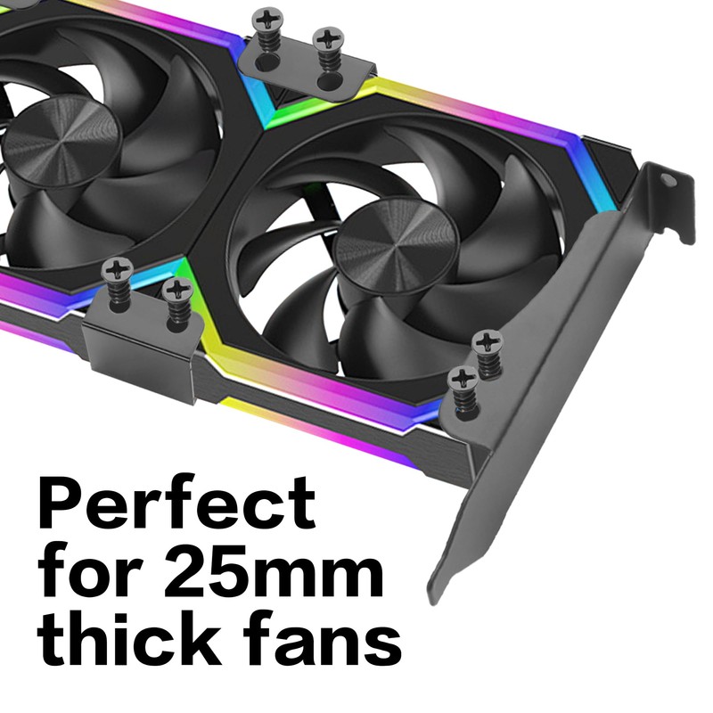 - The graphics card bracket fan mounting effectively improves the cooling effect of the system, reduce heat accumulation,reduces the noise of the computer case, and obtains more powerful performance.