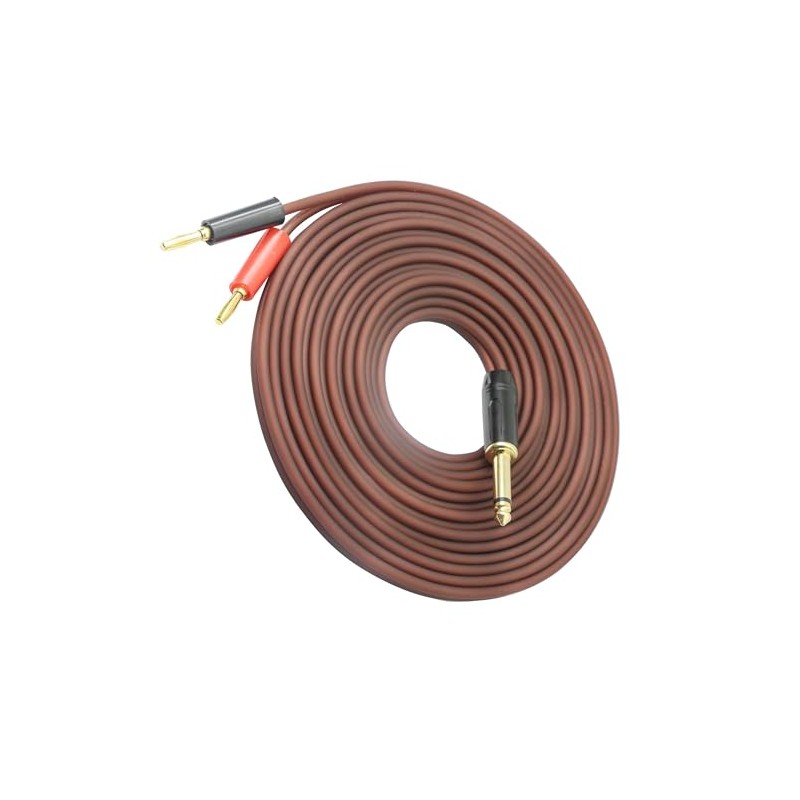- The dual banana plug to 1/4 ts mono cable features a gold-plated plug that is sturdy and durable. The plug is protected by a non-magnetic shell for stable transmission performance. The elasticity design of the banana plug tightly presses the device jack, creating a large contact area for a tighter fit when inserted.