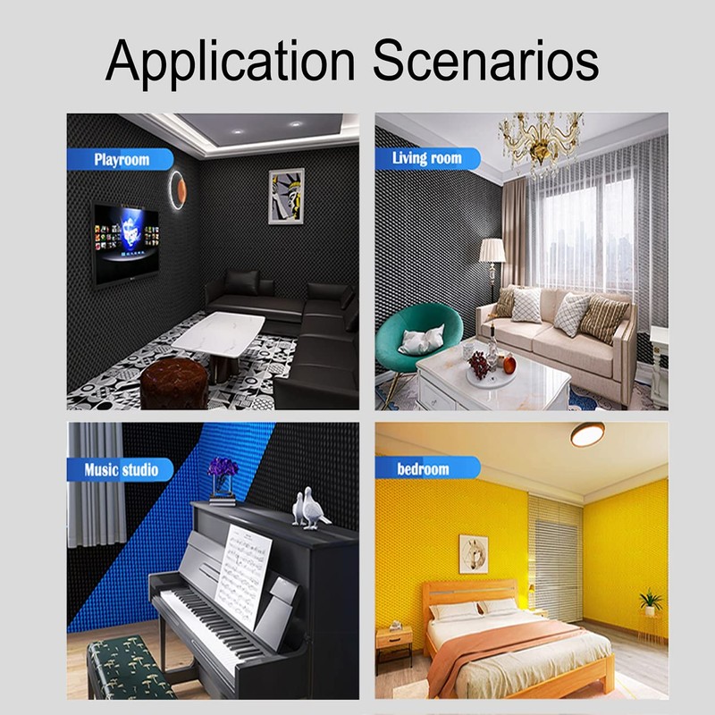 • 【Extensive Application】 Our foam sound proof panels has excellent sound absorption capabilities. The sound proof panels for walls are used for professional recording studios, bedroom soundproofing, game room soundproofing, office soundproofing, basement soundproofing, studio soundproofing, home theater sound insulation, and so on.