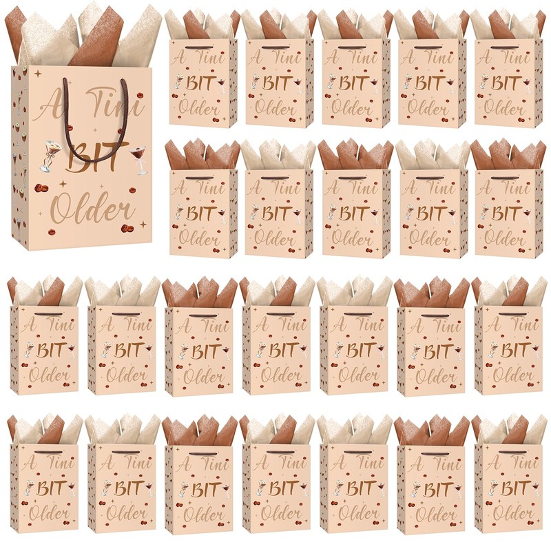 Yaomiao 24 Set a Tini Bit Older Martini Party Gift Bags with Handles Espresso Martini Party Favor Bags Treat Goodies Bags with 24 Pcs Tissue Papers for Martini Bachelorette Party (Brown Style)