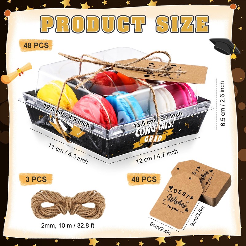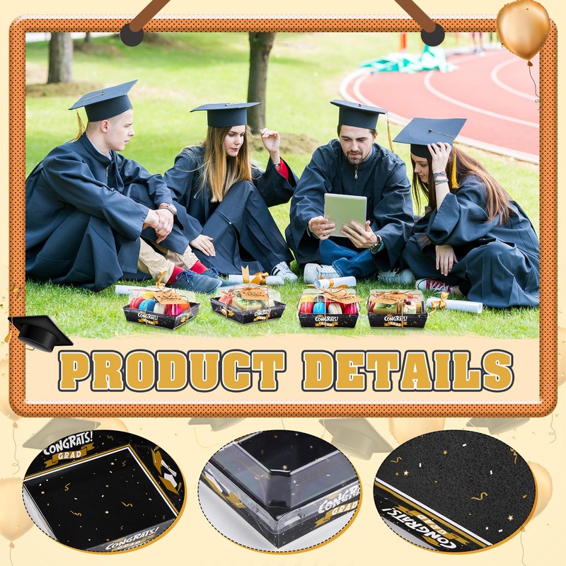 - Comprehensive Graduation Party Cooked Food Box Set: this set comes with 24 graduation themed charcuterie boxes with transparent covers; The set also includes 2 bundles of durable rope and 24 cards, ensuring you have different things you need to package your party food; This will add a celebratory ambience to your graduation party