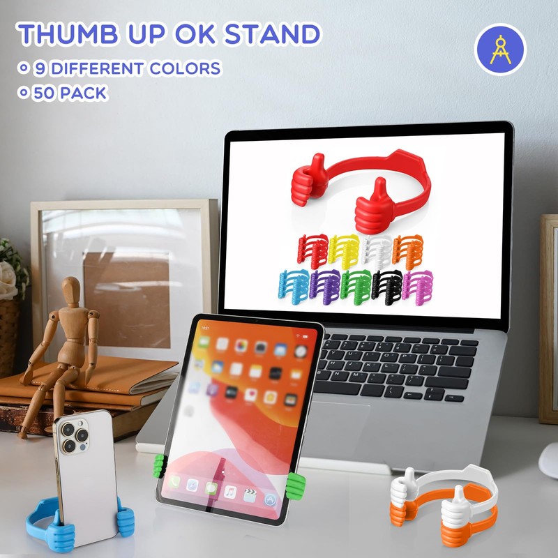 Yaomiao 50 Pcs Thumbs up Cell Phone Stand Holder, Tablet Display Stands Adjustable Mobile Phones Stand Smartphone Desktop Holder for Desk Offices Bedrooms Airplanes Travel (Classic Colors)