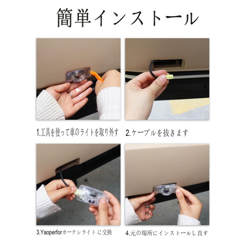 - High Quality: 100% brand new car courtesy. LED life: more than 100,000 hours Genuine courtesy lamps are dark and difficult to see, so the LED courtesy uses a high power chip in the logo irradiation portion, so it is clear and improves the effect of the original courtesy lamp