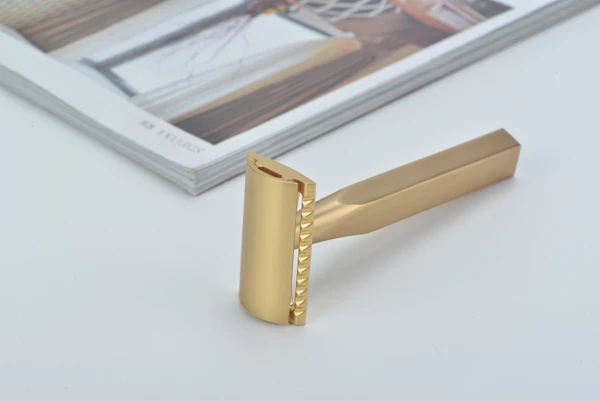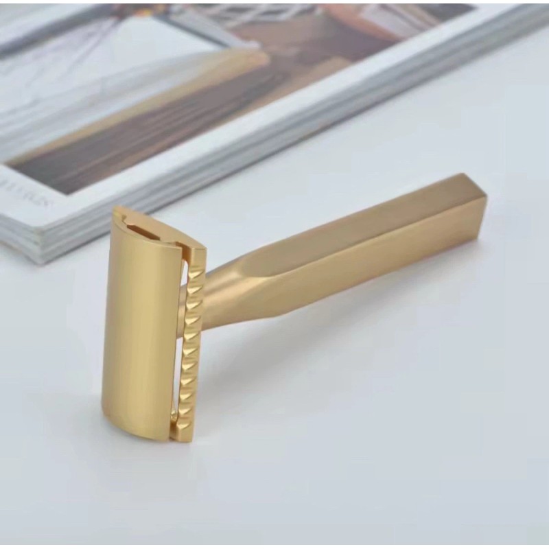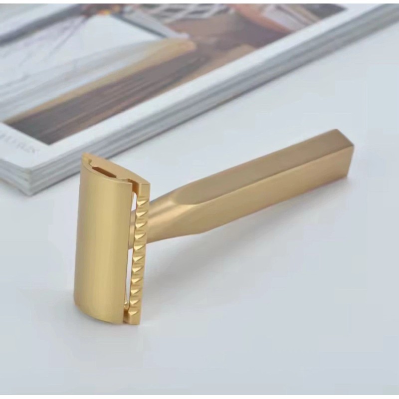 Yaqi Aluminum Matte Gold Bar Three Piece Double Edge Safety Razor Shaving
