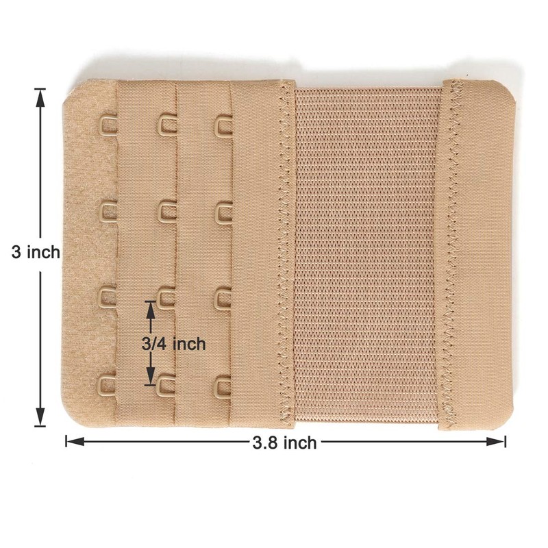 Bra extender 4 hook 3/4 inch (19mm) hook center spacing; SIZE(Length x Width): 3.8 inch x 3 inch / 96 mm x 76 mm