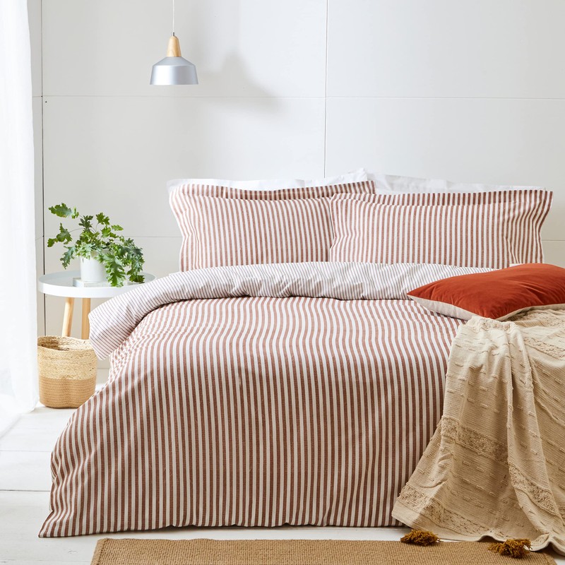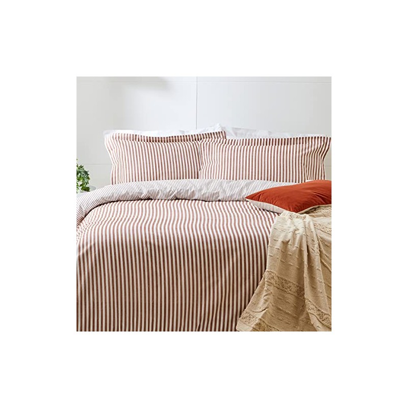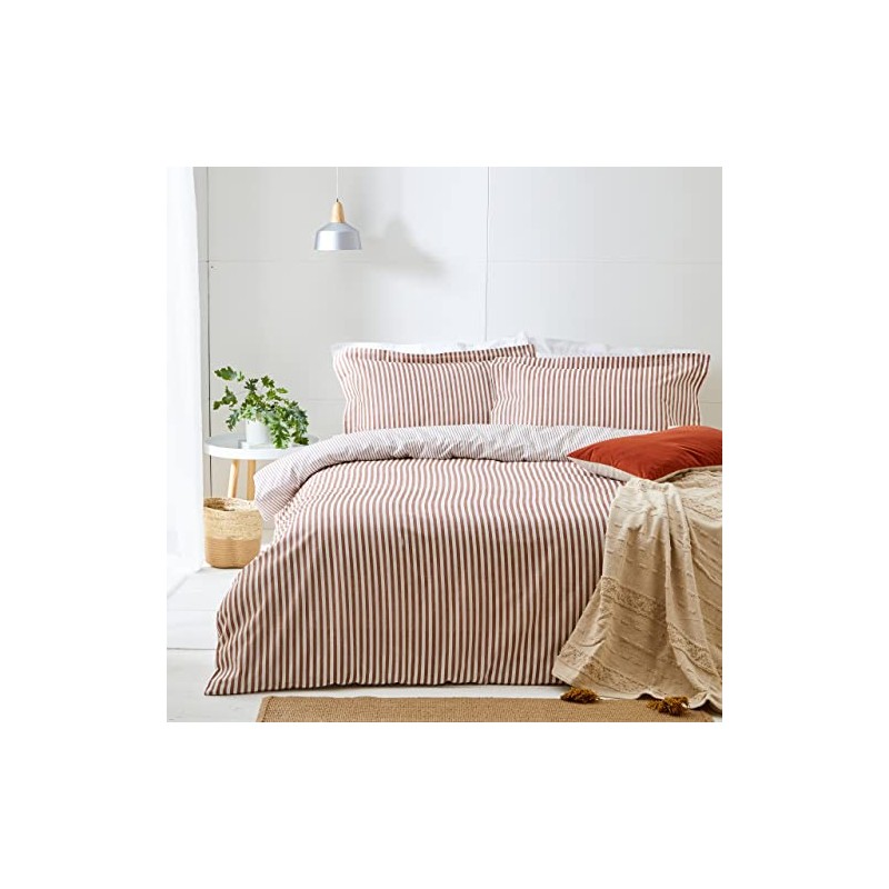 Yard Hebden Mélange Stripe Cotton Duvet Set – Ultra Soft Reversible Striped Bedding (Pecan – Single)